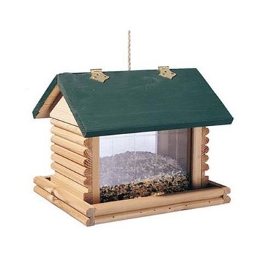 North States Hanging Log Cabin Birdfeeder Green Roof For Sale