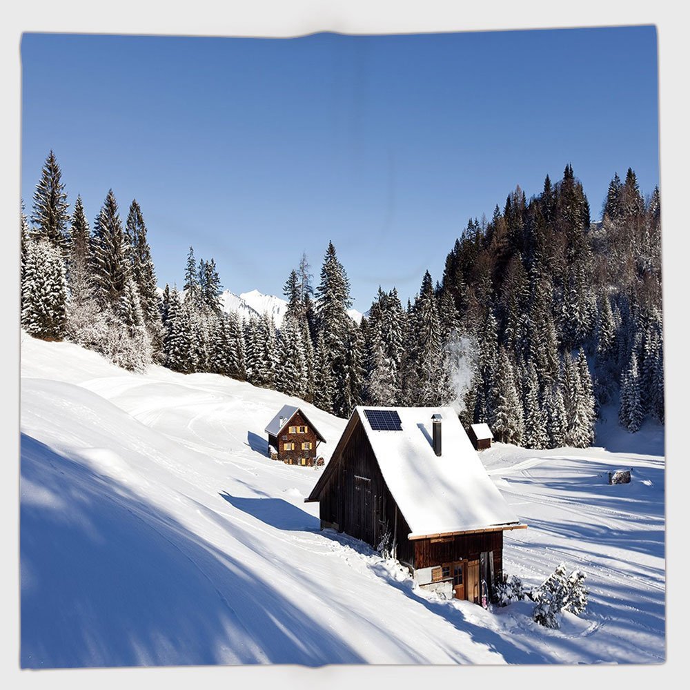 Amazon Com Crabee White Round Tablecloth Winter Log Cabins In The