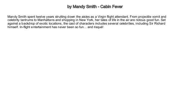 In cabin fever former virgin atlantic flight attendant mandy smith updates the genre sharing the good the bad and the downright naughty about life in the air.