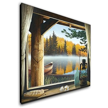 Cabin Cottage Art Mountain Lake Scene Romantic Personalized