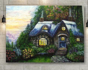 Rustic Cabin Oil Painting Landscape Art Painting Landscape
