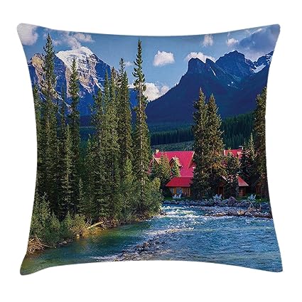 Wooden cabin on a quiet lake surrounded by lush green trees log cabin on lake louise.